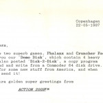 After the first instalment of The Movers‘ swap letter collection caused such a tremendous interest, we finally bring you the next batch. Once again, it’s a treasure trove, full of forgotten voices from the dawn of the C64 and Amiga scene. We learn about the hardships of switching computer platforms, about transatlantic software trade and crackers worrying about being “greeted” in intro scrolltexts, we read Strider/Fairlight complaining about “communist Sweden”, SCA sending out custom-made anti-virus software to protect their friends from their own SCA Virus (the infamous, first ever Amiga virus), and so on. A particularly emotional document is the letter by Dennis a.k.a. Turtle/Danish Gold, whom many of our readers knew and met at demoparties, and who sadly passed away in 2006. Here, we read his lines back in 1987, when he just got himself an IBM PC and was looking forward to the Danish Gold copyparty…
