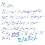 Here we go with the next instalment of the SCA archive, this time with another batch of letters received by Saturnus the Invincible (STI). On the one hand, there are some addenda to the 1987-1988 period, when STI was involved in swapping and correspondence primarily as a scener. On the other hand, this update features many letters from the late 1980s and early 1990s, when he focussed on developing Amiga games and tools, and thus received a lot of support requests from ordinary users. A particular highlight is a letter from Commodore Germany to STI’s mother. A lawyer, presumably on behalf of Commodore Germany, had sent STI a cease-and-desist letter related to software swapping. His parents wrote to Commodore Germany, and its legal department clarified that the lawyer had not been commissioned by them and the cease-and-desist letter was null and void. Here is the complete list of materials in this update. including letters from: